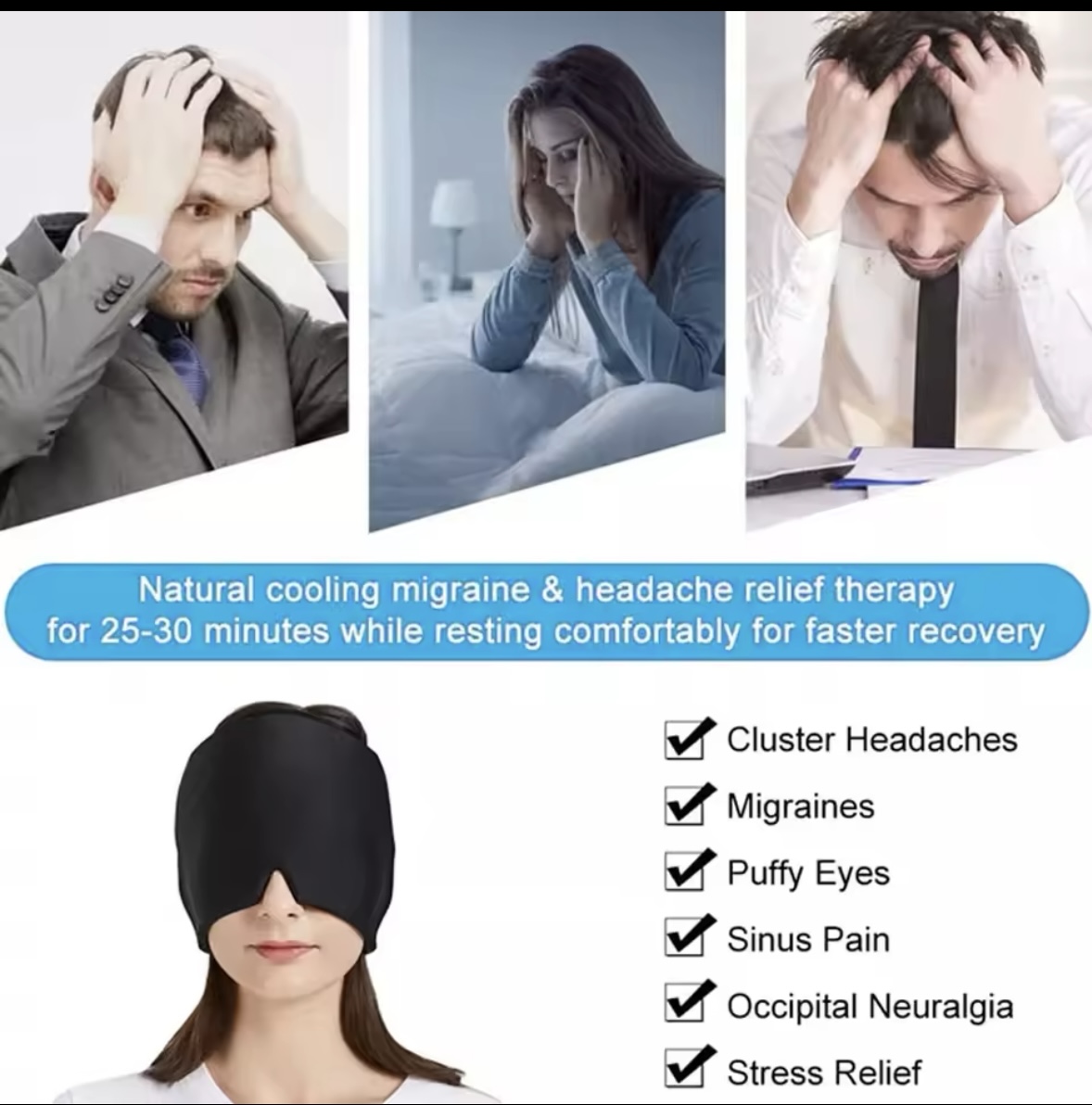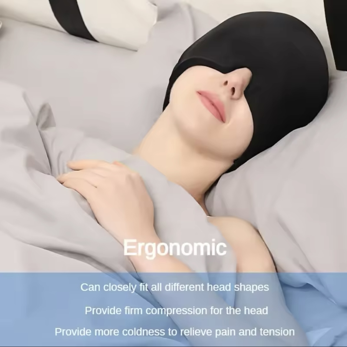 Gorro para aliviar la migraña, cubierta de gel, reutilizable, para aliviar el dolor de cabeza, color negro, para aliviar el dolor de cabeza, ojos hinchados